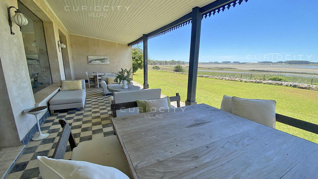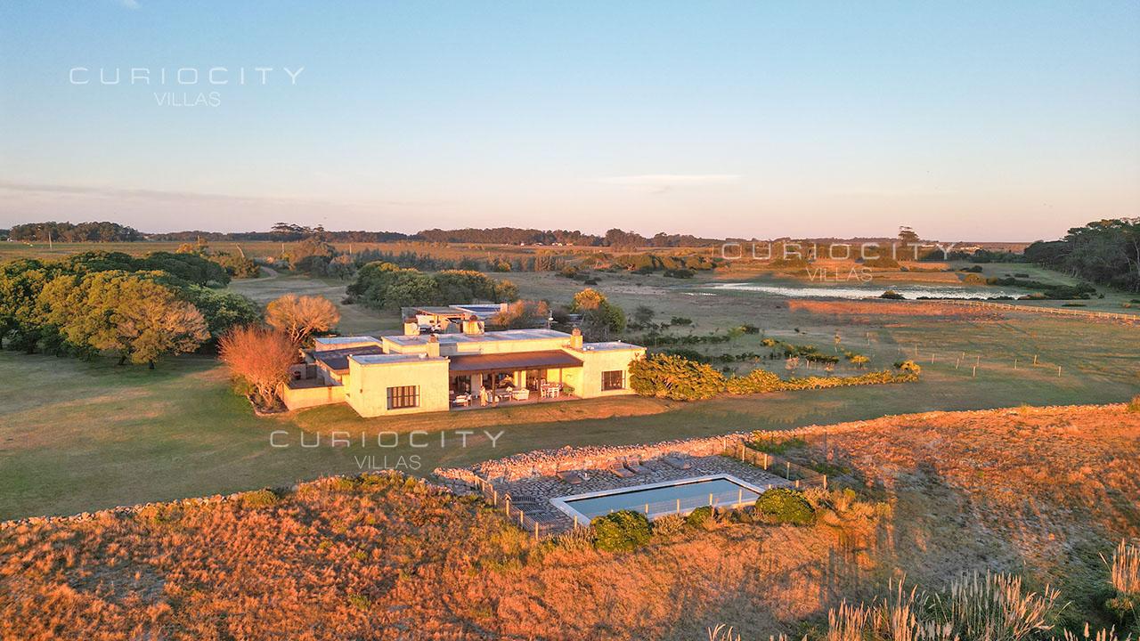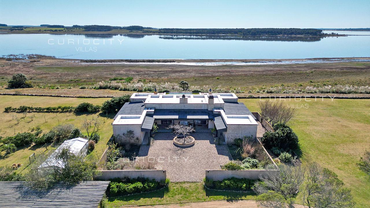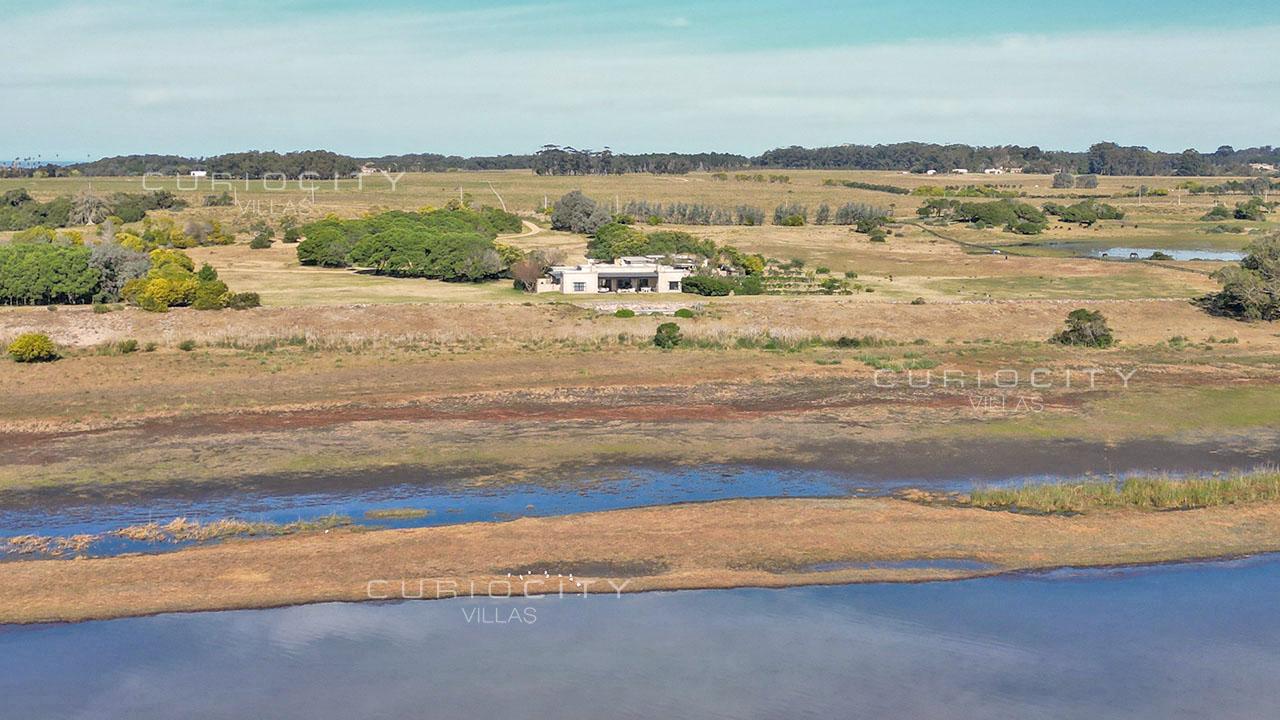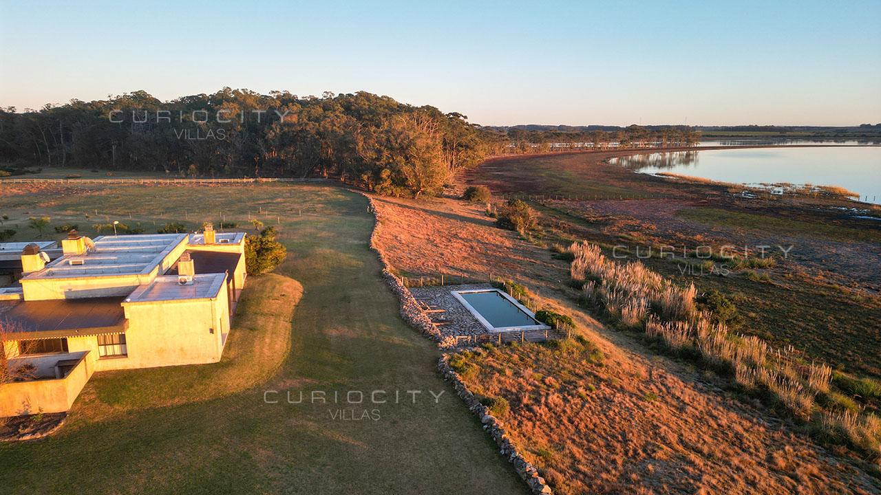 Charming countryside retreat set by the shores of Garzon Lagoon, with ten hectares of private lush gardens and just minutes away from the beautiful beaches, restaurants and the chic crowd of Jose Ignacio. The villa is designed in one level, with all the living areas cleverly distributed in order to make the living experience truly pleasurable. Its décor - a balance of vintage and contemporary furniture mixed with original and very unique countryside items, recreates a 1900's working ranch's cottage. The very heart of the house is a spacious living room and dining room, with floor-to-ceiling windows along both sides wide of the room that blends with two outdoor, furnished galleries and provides easy access to all the bedrooms of the house, as well as to the kitchen. The bedrooms have generous views of the lagoon, whispering trees and miles of virgin lands, private bathrooms, and are decorated in white linens with dots of color. Two of them have king-size beds and the other three are set with twins. The master bedroom has a small, private living, fireplace and walk in closet. The rest of the amenities include a large, seasonal swimming pool, with sun loungers and parasols, which is located in the middle of the backyard, half way between the rear gallery and the lagoon. There is also an organic orchard, 4 covered parking lots, and a separate house for the housekeepers with additional room for the hired help. This property provides a true encounter with Uruguayan nature, in a chic and relaxed atmosphere, with all the comforts and privacy needed for unique stays.