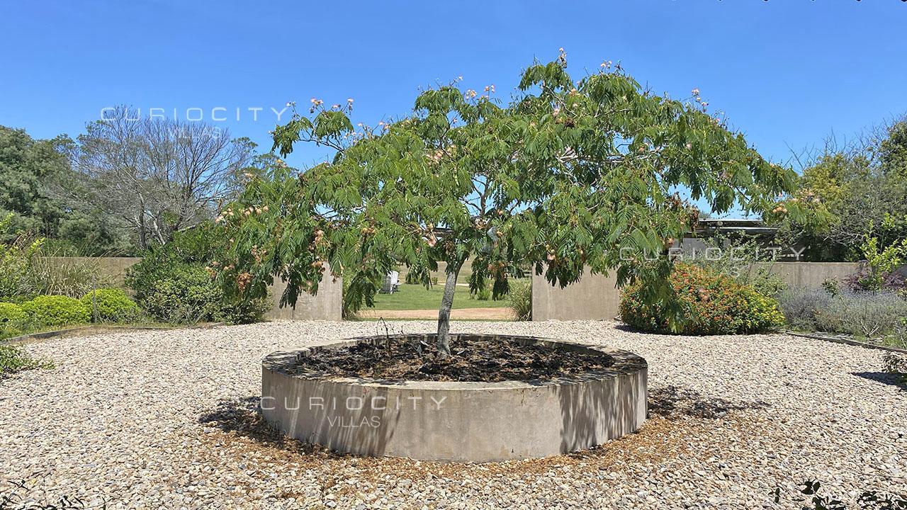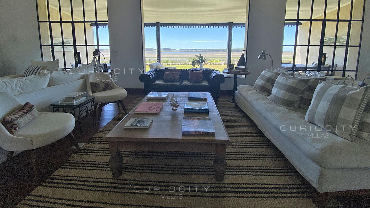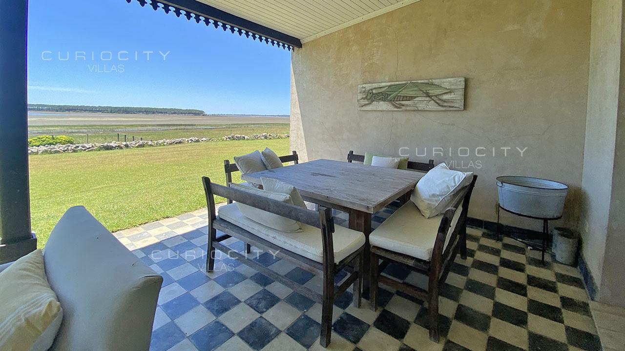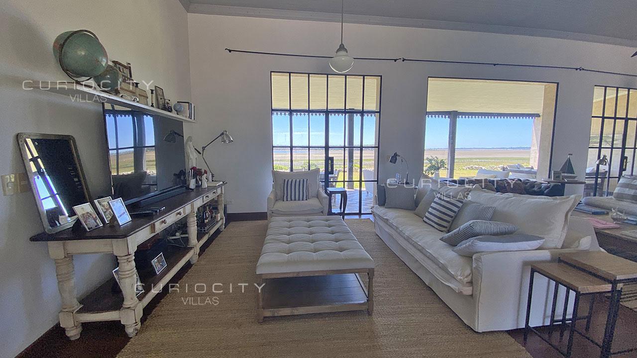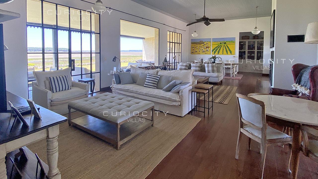 Charming countryside retreat set by the shores of Garzon Lagoon, with ten hectares of private lush gardens and just minutes away from the beautiful beaches, restaurants and the chic crowd of Jose Ignacio. The villa is designed in one level, with all the living areas cleverly distributed in order to make the living experience truly pleasurable. Its décor - a balance of vintage and contemporary furniture mixed with original and very unique countryside items, recreates a 1900's working ranch's cottage. The very heart of the house is a spacious living room and dining room, with floor-to-ceiling windows along both sides wide of the room that blends with two outdoor, furnished galleries and provides easy access to all the bedrooms of the house, as well as to the kitchen. The bedrooms have generous views of the lagoon, whispering trees and miles of virgin lands, private bathrooms, and are decorated in white linens with dots of color. Two of them have king-size beds and the other three are set with twins. The master bedroom has a small, private living, fireplace and walk in closet. The rest of the amenities include a large, seasonal swimming pool, with sun loungers and parasols, which is located in the middle of the backyard, half way between the rear gallery and the lagoon. There is also an organic orchard, 4 covered parking lots, and a separate house for the housekeepers with additional room for the hired help. This property provides a true encounter with Uruguayan nature, in a chic and relaxed atmosphere, with all the comforts and privacy needed for unique stays.