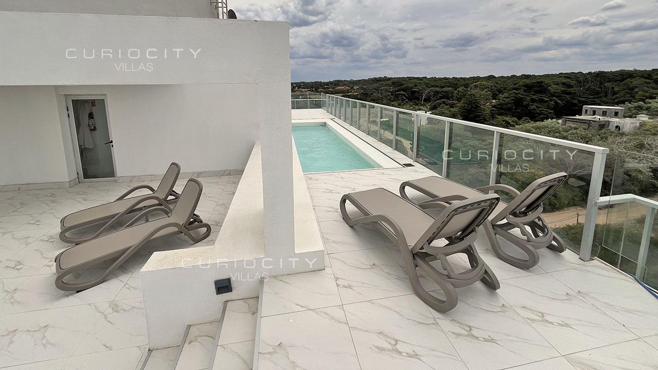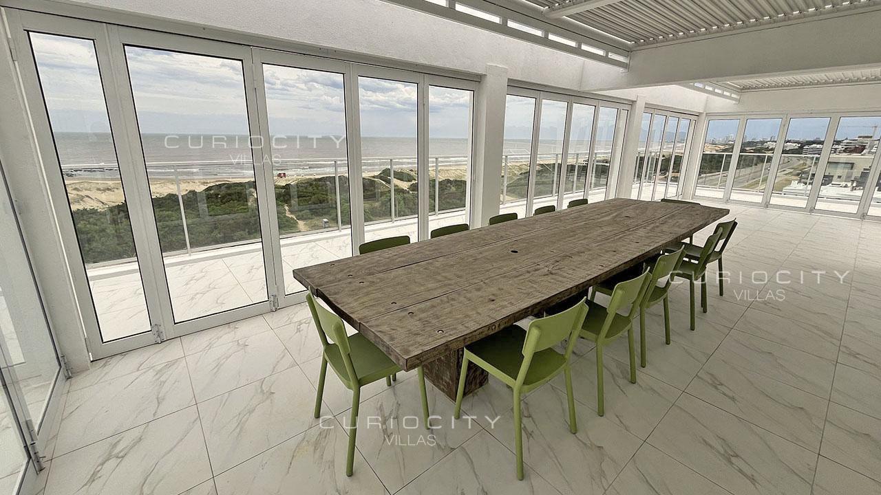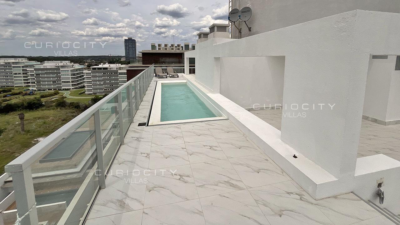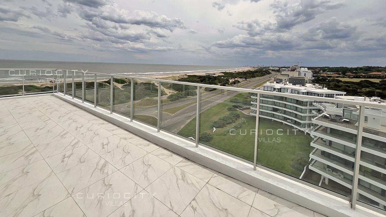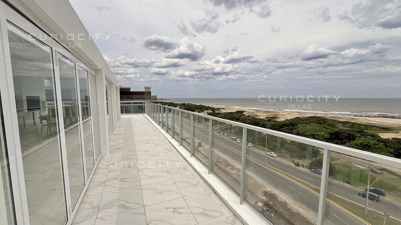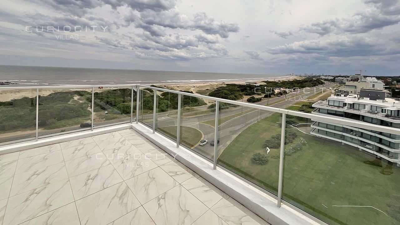 This luxury condominium penthouse is located first row towards Punta del Este Brava Beach's coastal strip, in the immediate vicinity of La Barra. The main floor of the unit is accessed by two modern elevators (no landing) plus service elevator, boasting an ample living and dining area overlooking the beach, which opens onto a large terrace that surrounds the entire apartment, guest toilet, a state-of-the-art kitchen, 3 bedrooms en suite, laundry, and a large Master Suite with two independent walk-in closets and two en suite bathrooms. A spectacular, private rooftop terrace with swimming pool and barbecue pavilion is accessed both by elevator and staircases. The penthouse unit owns 3 independent, underground parking spots and a storage. The condominium common use amenities and services include an open-air heated swimming pool, playroom, massage room and sauna, gym, multi-purpose room, barbecue pavilions, 24/7 concierge, cleaning and beach service. Seller finance available! Please get in touch for detailed information.